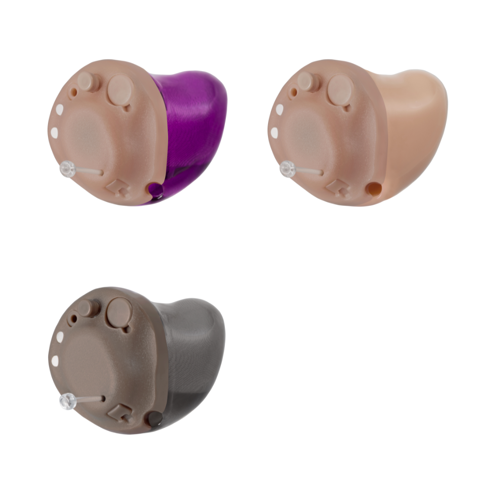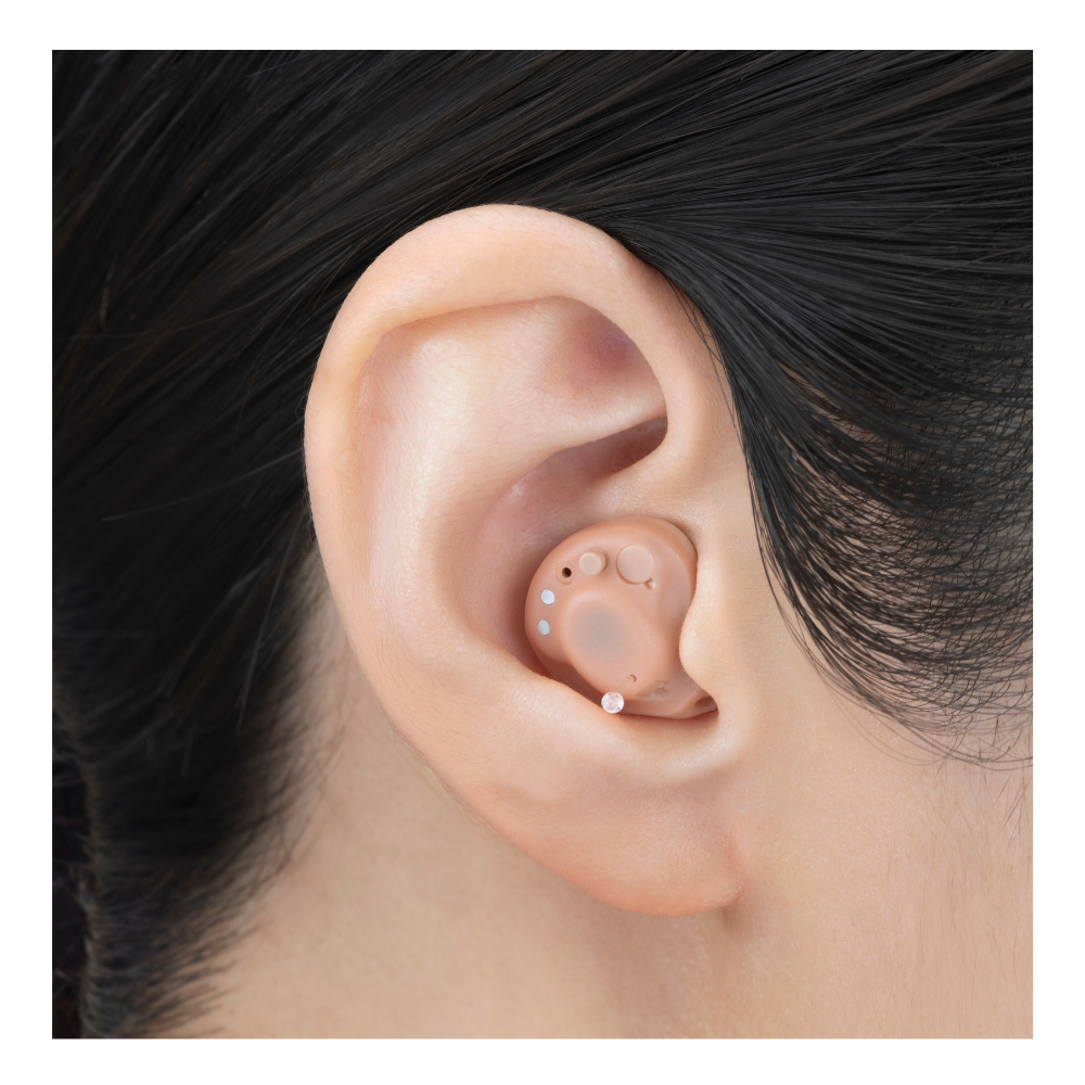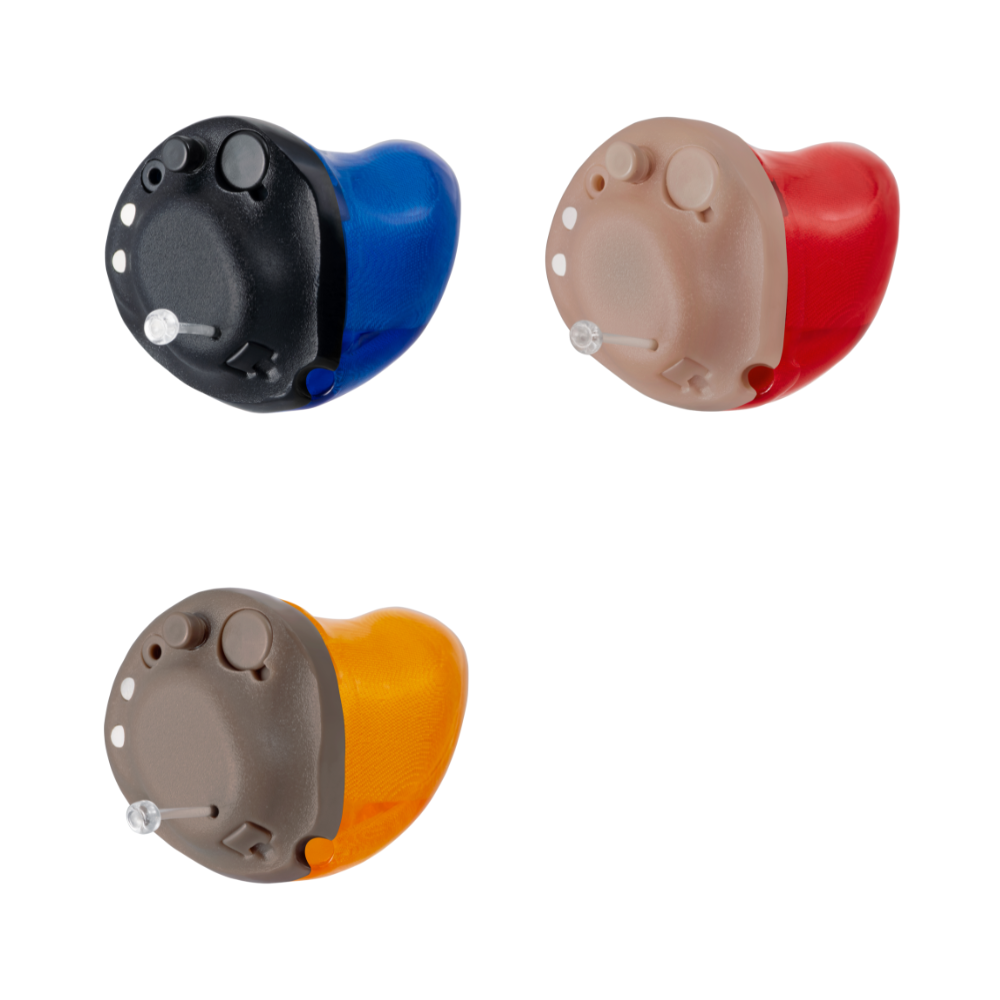音質の切り替えができるオーダーメイド補聴器。18通りのカラーバリエーション。